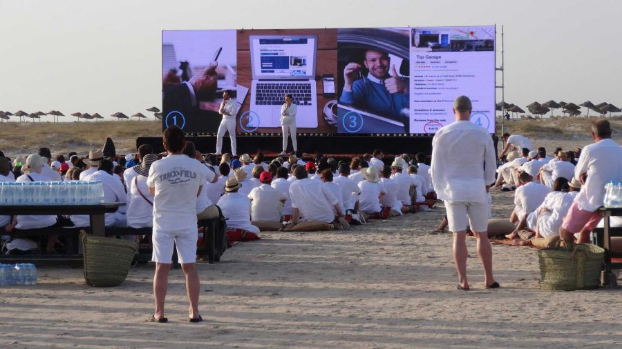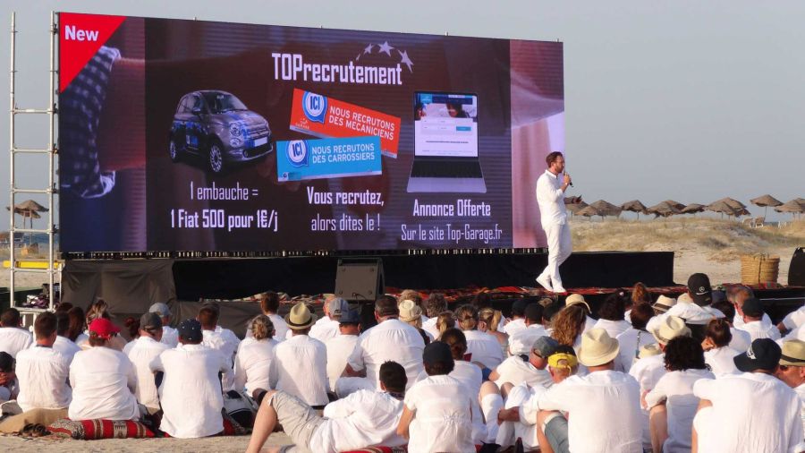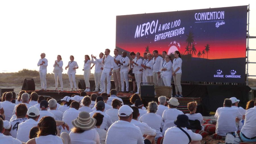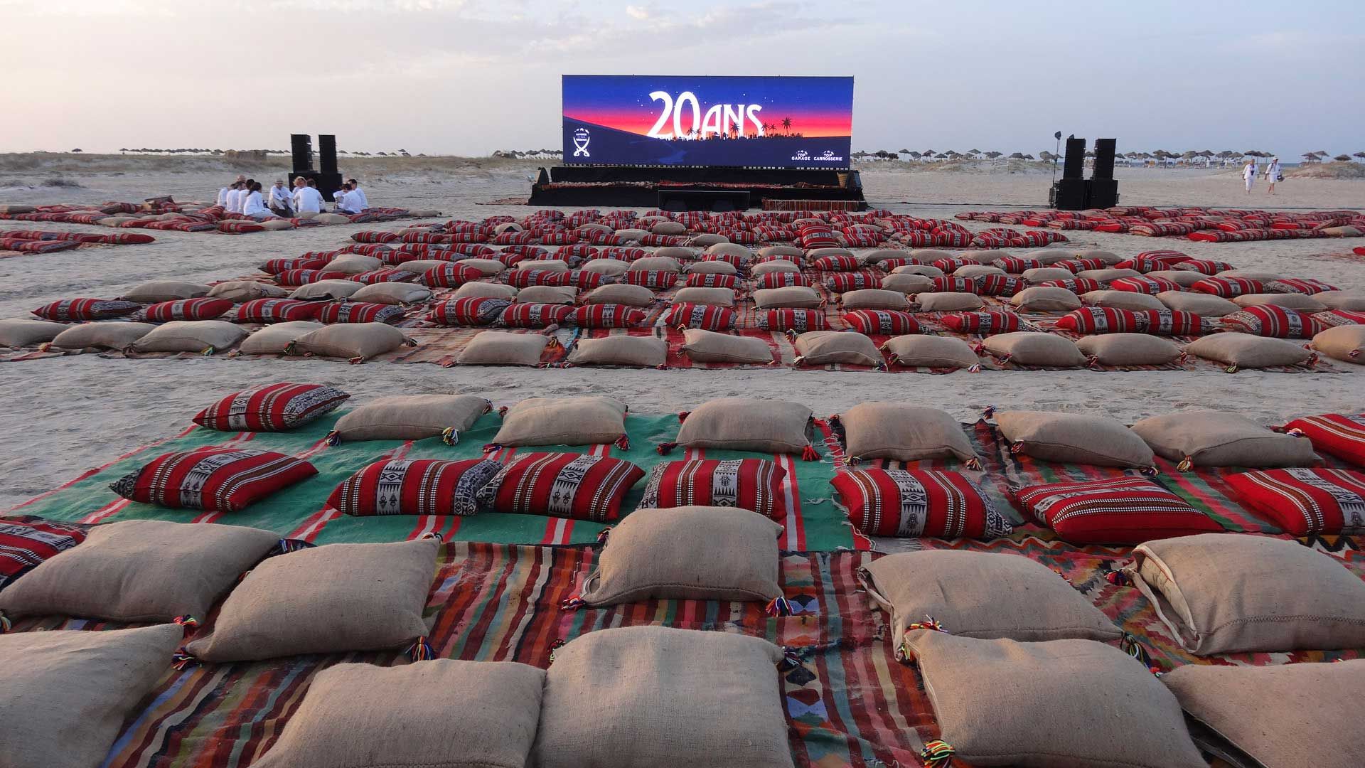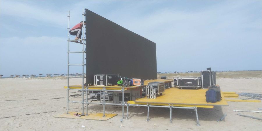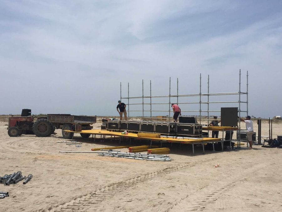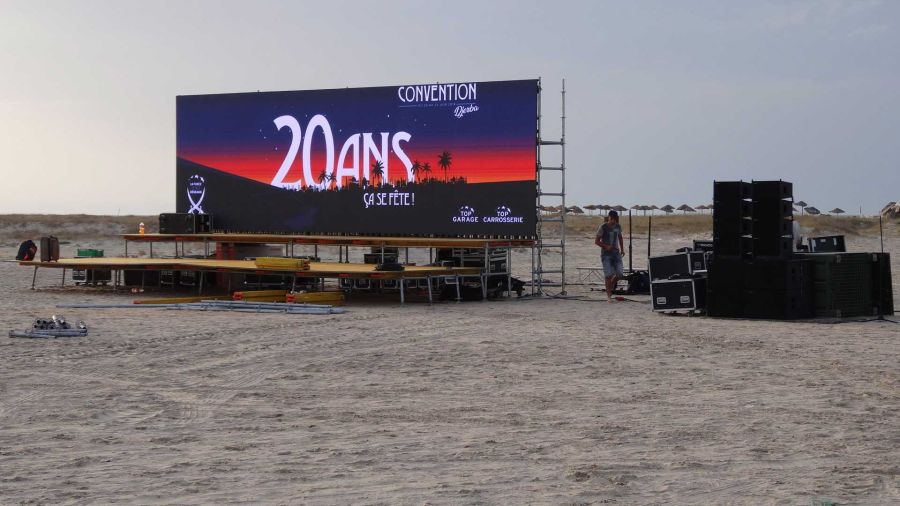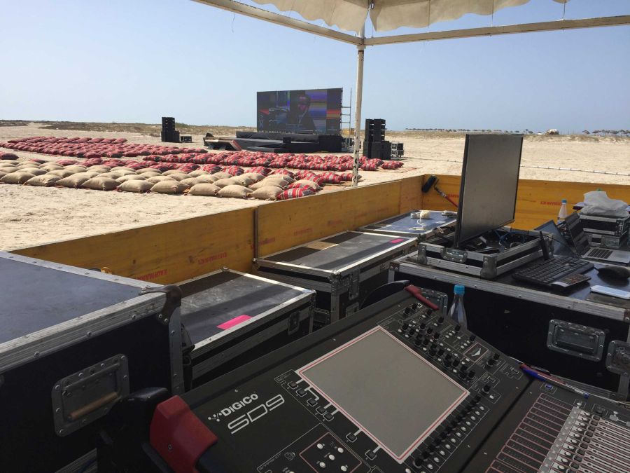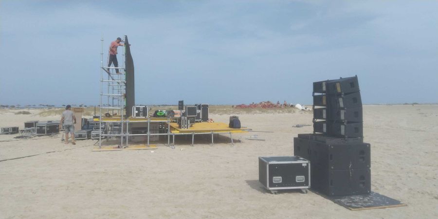Et bien sûr, qui dit île dit rien sur place. Nous avons donc mis en place une production d’énergie autonome et fourni la sonorisation, l’éclairage, la vidéo (écran plein-jour), la structure... Et bien sûr, nous avons assuré la logistique complète ! Tout cela grâce à une équipe franco-tunisienne qui a œuvré pendant plus d’une semaine pour la mise en place du matériel dans des conditions difficiles. Bravo à nos équipes !